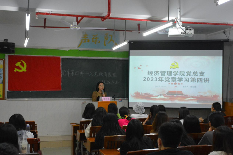 回首百年,无论风云变幻、沧海桑田,中国青年爱党、爱国、爱人民的赤诚追求始终未改,坚定不移听党话、跟党走的忠贞初心始终未变。2023年10月26日,经管学院第二党支部纪检委员戴双雅同志在西一409会议讲解党章第四讲。参加本次会议人员有23级经管学院新生,以及党建小组成员,本次会议由曾雪婷同学主持。