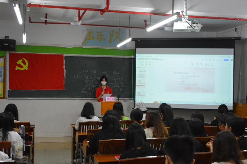 随后,戴双雅同志讲述了中国共产党成立时间和重要思想,并对党章进行详细阐述。戴双雅同志指出党章的作用是保证全党在思想上、政治上、组织上、作风上、行动上的一致,是党存在、发展和夺取胜利的一个基本条件。最后讲述到在校的入党流程,戴双雅同志在黑板上给同学们板书了入党流程。