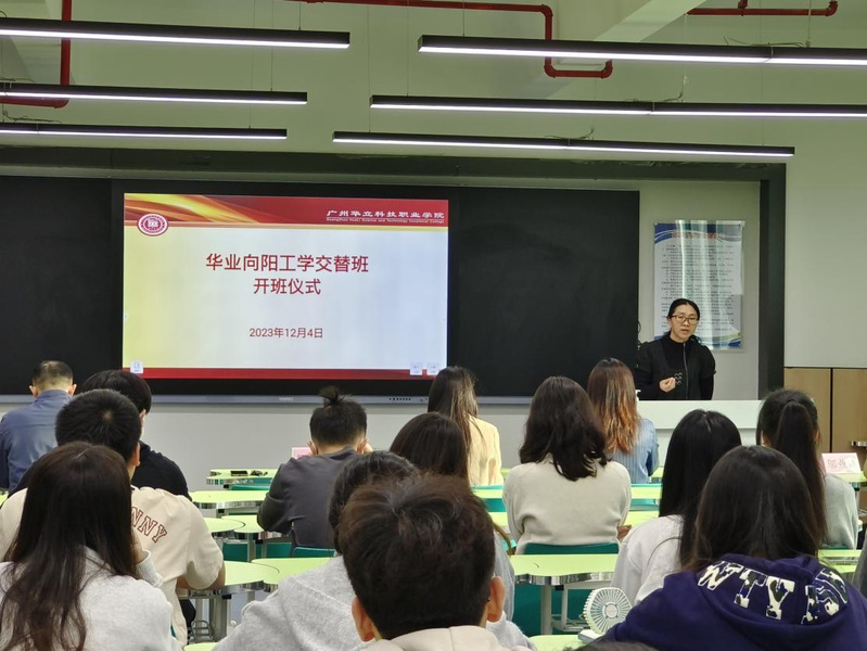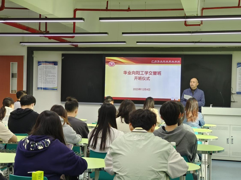 为了进一步提高大数据与会计专业学生实操能力和专业素养,2023年12月4日下午,广州华立科技职业学院经济管理学院大数据与会计专业“工学交替”教学改革试点开班仪式,在西3-209课室举行。华业向阳会计师事务所人力资源经理陆惠怡女士,审计部经理李春贵女士,审计员邬业锋先生,经济管理学院院长梁慧贞老师,经济管理学院教学主任冷长恒老师,经济管理学院教师代表与“华业向阳”工学交替班学生出席了此次开班仪式,工学交替班开班仪式由经济管理学院黄冠霖老师主持。
