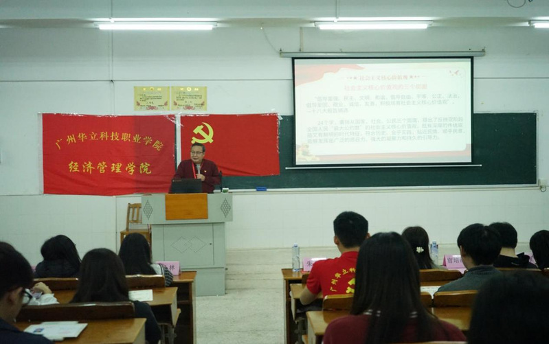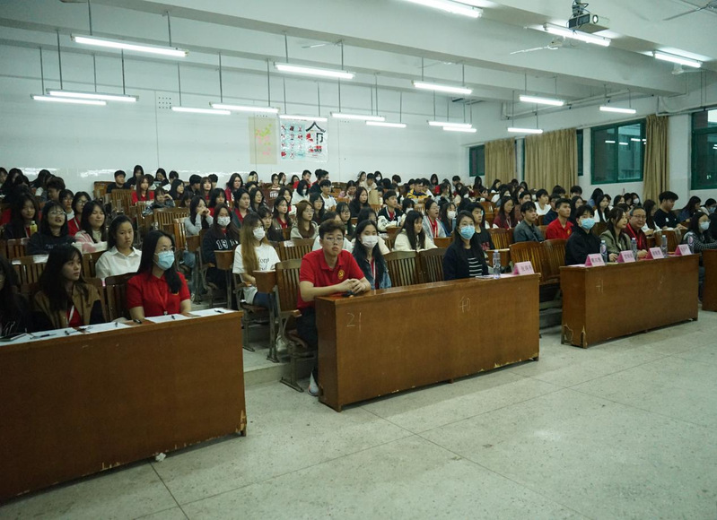 2024年3月19日晚,经济管理学院党总支书记朱少先在图书馆5楼501开展以“青春为祖国,挺膺共担当”思政第一课。学管教师、22级入党积极分子,以及党建小组成员共一百多人听课。