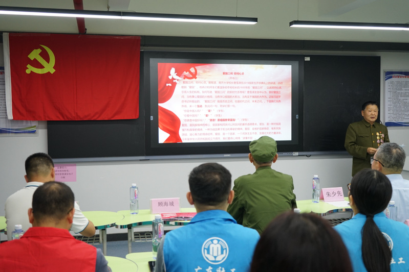 接着由顾海源同志作英模报告。报告前,顾海源同志和现场同学们进行了“爱国三问”小互动,顾老向同学们讲解了“国”的象形含义和丰富的文化内涵。顾老介绍了他作为“炮兵的眼睛”深入虎穴为我炮兵部队侦察报告传递情报为攻坚战役取得重大胜利荣立二等战功的战斗故事,指出我们今天的幸福生活归根结底来源于中国共产党的正确领导,来源于革命先烈的英勇牺牲,来源于人民群众的艰苦奋斗,来源于社会主义制度的优越性。