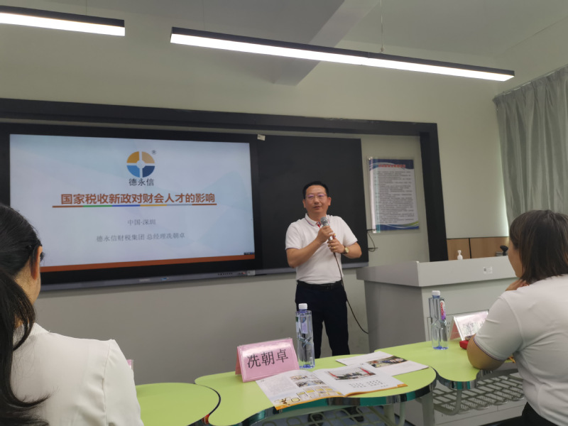 为领悟国家税收新政策,了解财会行业发展新趋势,促进专业建设进步,有效指导高职学生职业素养与岗位技能教育,42日上午,经济管理学院2024年企业精英进校园,主题为《国家税收的新政对财会职业的影响》知识讲座,在西3-209举行,主讲人为校企友好合作单位---深圳市德永信财税集团有限公司总经理冼朝卓先生主讲,经济管理学院负责人梁慧贞院长、副院长朱向平、教师代表、大数据与会计及大数据与财务管理专业2022级学生代表,一起出席了本场讲座。