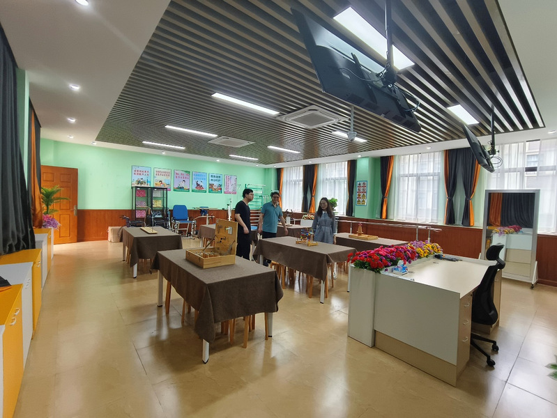 本次考察得到广东工商职业技术大学健康学院副院长谢丽仪的大力支持和热情接待,在考察过程中,谢院长为我们详细介绍了广东工商家政专业实训室的建设情况,并陪同我们先后参观了母婴实训室、居家服务实训室、智慧养老实训室、中医保健实训室、医疗护理室和家政礼仪实训室,为我们讲解各个实训室的配置与功能。
