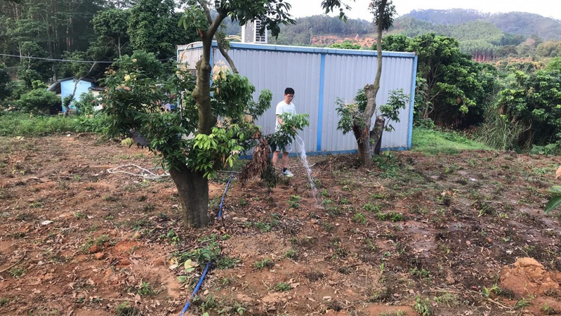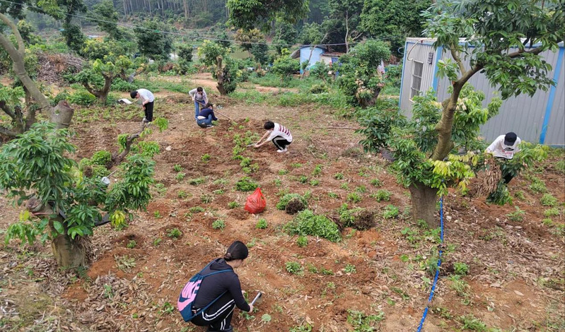 图2 师生代表在陆村村荔枝林农场开拓新的凉粉草种植地
