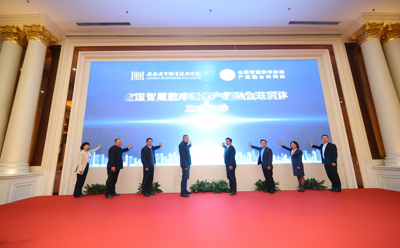 2023年11月25日,由高校毕业生就业协会、中国教育发展战略学会产教融合专委会和中国商业会计学会职业教育分会指导,由东北财经⼤学、安徽商贸职业技术学院、航天信息股份有限公司牵头成立的全国智慧数字财经产教融合共同体大会在安徽芜湖举行。来自全国253家高校院所和企业界的首批成员单位参加成立大会。