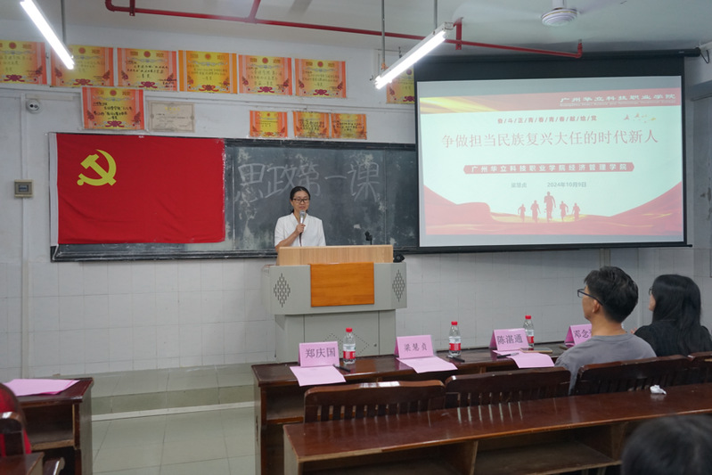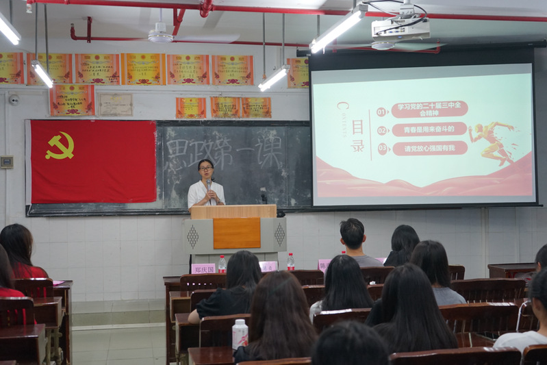 为深入贯彻落实党的二十届三中全会精神,引领广大新生坚定理想信念、强化使命担当,扣好大学的“第一粒扣子”。2024年10月9日晚上,梁慧贞副院长为2024级新生讲授了主题为“争做担当民族复兴大任的时代新人”的“思政第一课”。参加本次课程的人员有党建小组指导老师陈湛通同志,辅导员老师邓念平同志、郑庆国同志,党建小组成员以及2024级新生代表。
