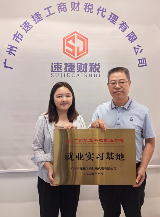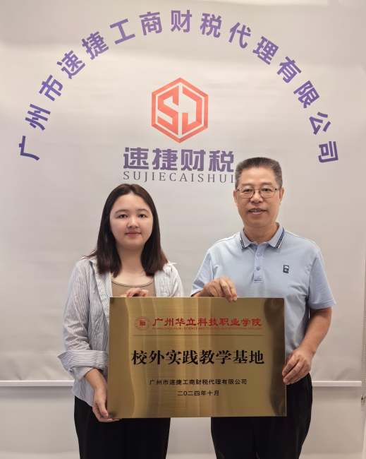 随后,华立职院陈校长向速捷工商财税授予“就业实习基地”“校外实践教学基地牌匾,为校企合作开启了新篇章。