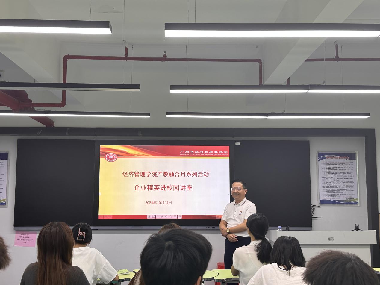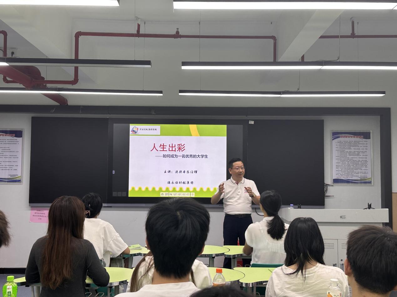 2024年10月24日下午,深圳德永信财税集团总经理冼朝卓先生亲临我校,为经济管理学院学子带来了一场题为《人生出彩》的精彩讲座。此次讲座作为产教融合、校企合作的一部分,不仅加强了校企之间的联系,也为同学们提供了宝贵的人生指导和职业规划建议。