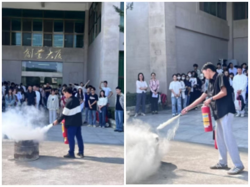疏散演练结束后,单进源老师还对师生进行了灭火器操作培训,我院师生积极参与演练,并掌握了正确的灭火方法和相关自救逃生技能。