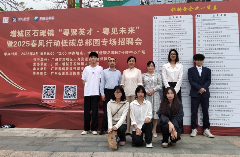 为深入贯彻落实教育部关于 “访企拓岗促就业” 的专项行动要求,进一步加强校企合作,拓宽毕业生就业渠道,提升人才培养质量,2025年3月14日,广州华立科技职业学院经济管理学院刘惠玲院长亲自率队参加了增城区石滩镇“粤聚英才-粤见未来”暨2025春风行动低碳总部园招聘会场,与企业面对面交流交流,开启了一场卓有成效的访企拓岗之旅。此次行动旨在精准对接企业用人需求,为学院学子搭建更广阔的职业发展平台,同时促进学院教育教学改革与产业需求紧密融合。
