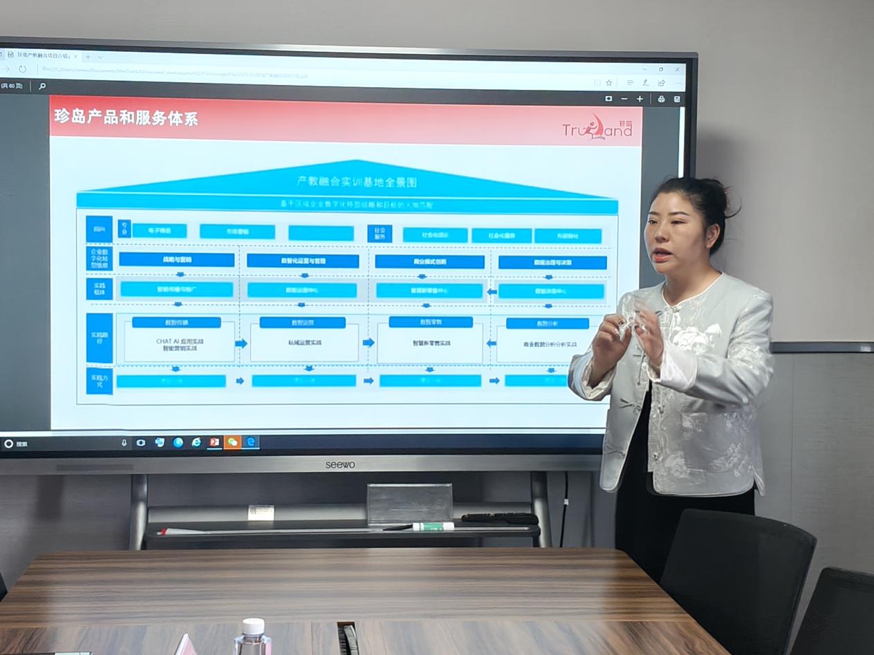 经济管理学院朱向平副院长对学院的专业设置、人才培养模式、师资力量以及近年来在教学改革、实践教学方面取得的成果进行了全面介绍。同时表示,学院以培养具有创新精神和实践能力的高素质经济管理人才为目标,注重理论与实践相结合,积极推进校企合作,为学生提供丰富的实习实训机会,帮助学生提升专业技能和职业素养,期待华立职院与珍岛公司后续能将产教融合工作做得更好,资源共享且为社会培养更多的优质人才。