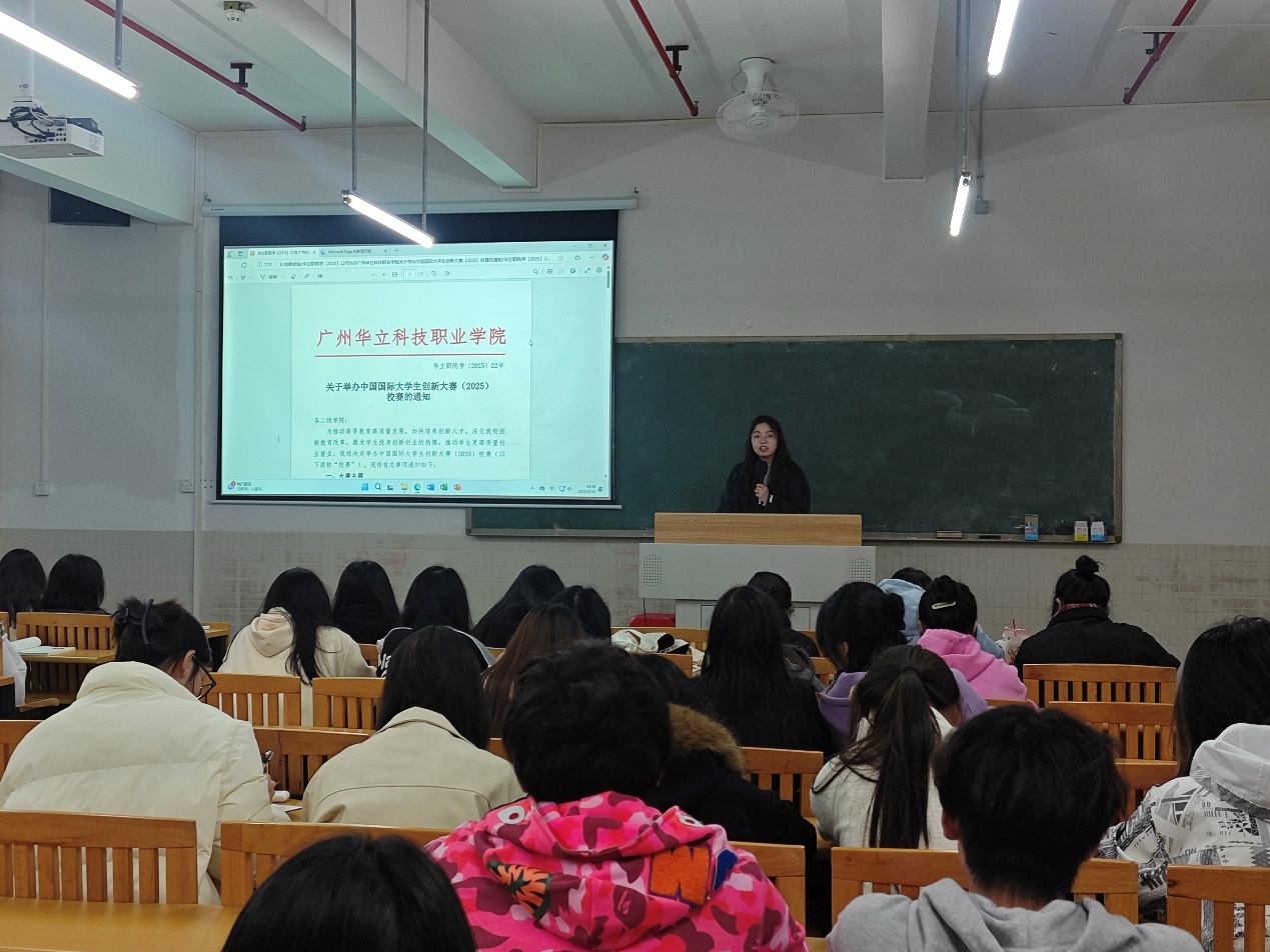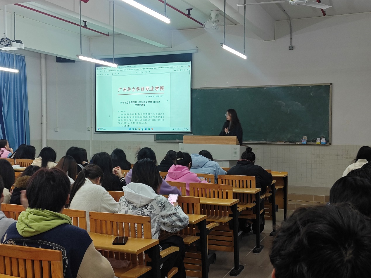为进一步引导我校大学生自主创新创业,培养学生创新精神和创业意识,调动学生参与创新创业比赛的积极性,增强参赛信心,提升实战能力,经管学院于2025年3月31日在2教课室组织并开展了中国国际大学生创新大赛(2025)报名与赛事解读宣讲会。