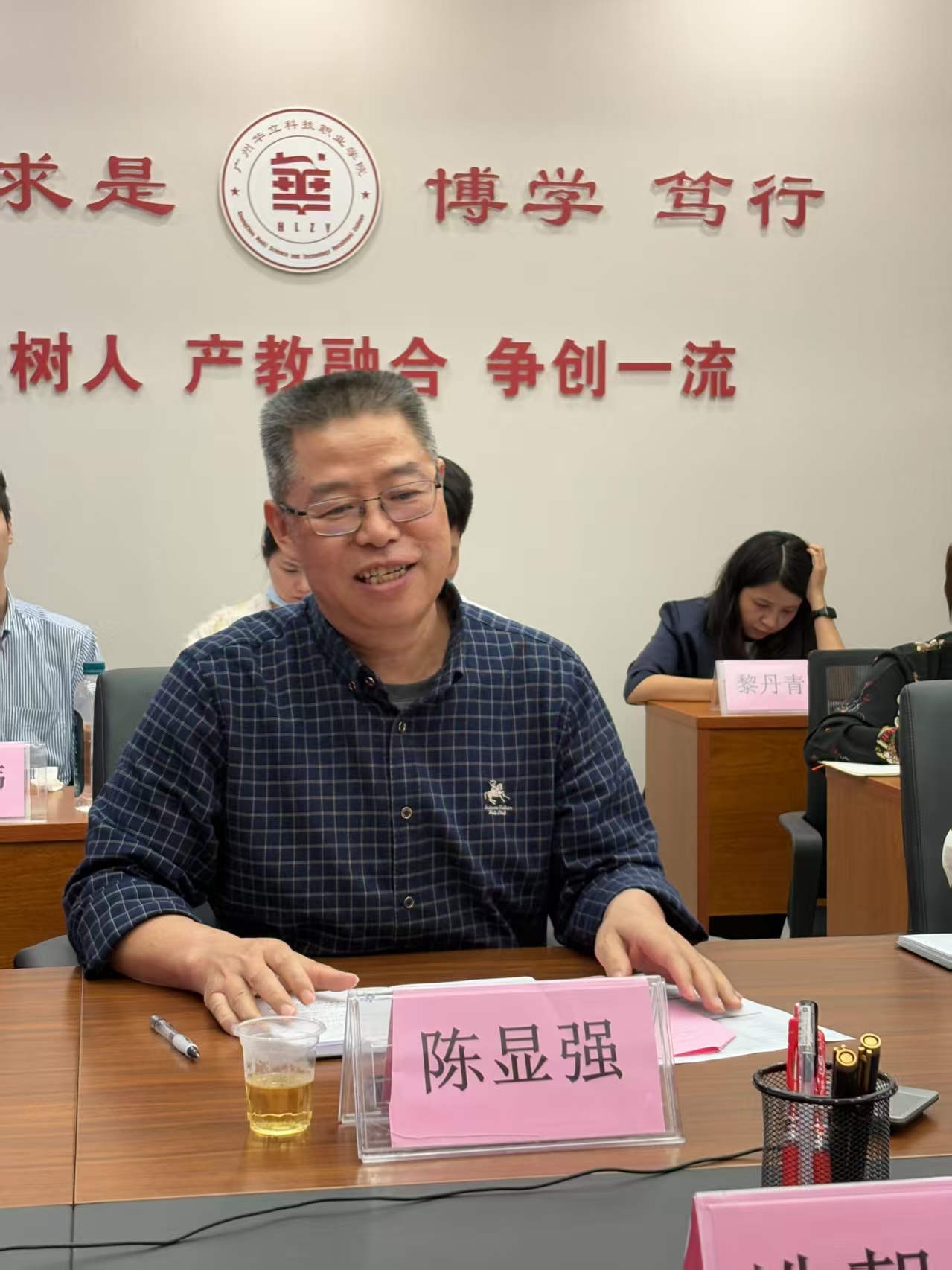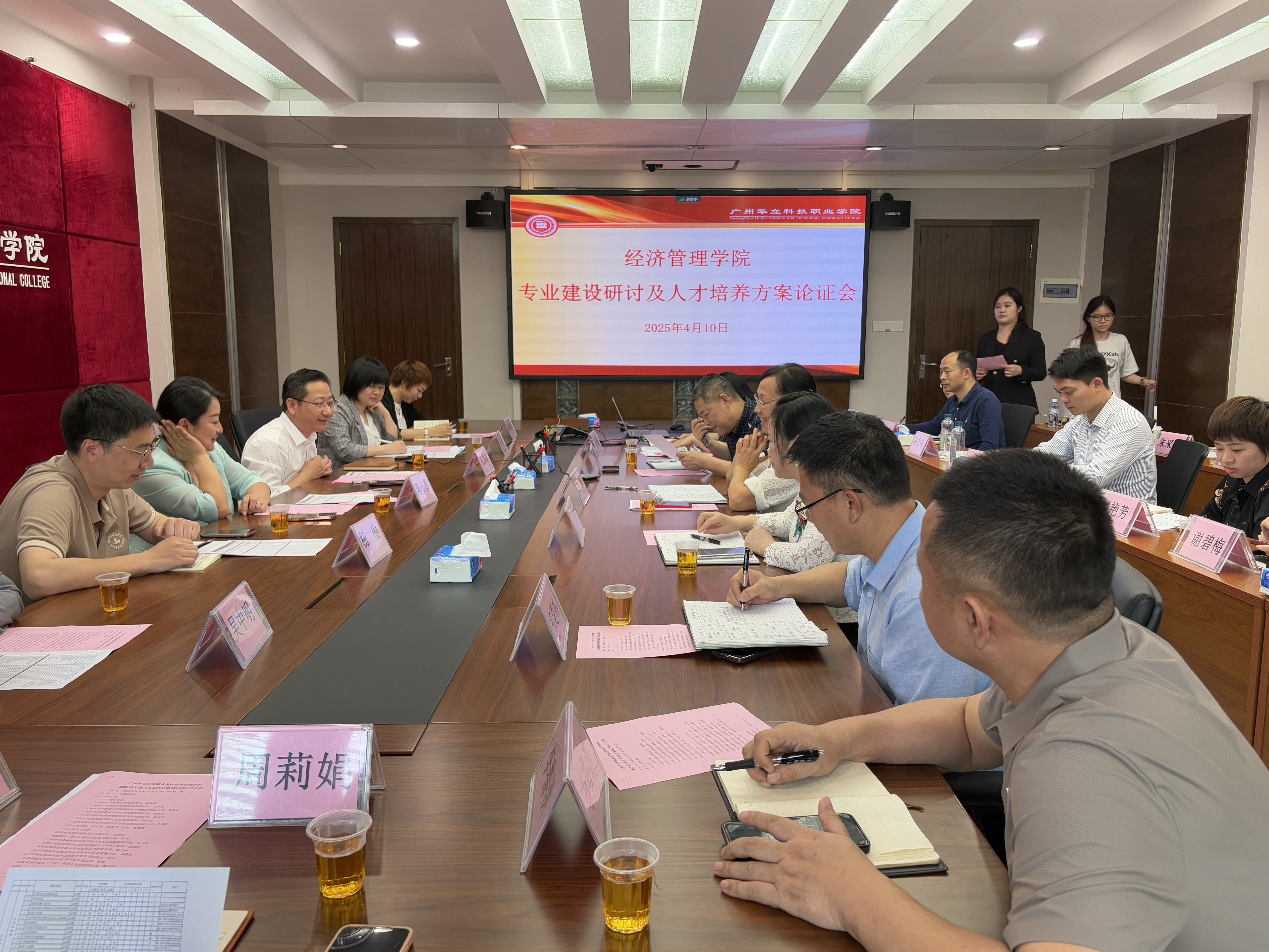 此次会议邀请了深圳德永信财税集团公司总经理冼朝卓,浪潮铸远(厦门)科技有限公司副总裁陈玲,广州经传多赢投资咨询有限公司人力资源部总经理吴中明 、部门经理黎丹青,中国人寿保险股份有限公司增城支公司部门经理汤丽萍、资深客户经理谢碧梅、温艳芳,东莞证券股份有限公司长安分公司副总经理陈小燕、 区域总监施祖林、区域总监周志炜,广州市增城区直播电商协会常务副会长兼秘书长周利娟,广州两山稼缘科技产业发展有限公司创始人刘权,上海奕教科技有限公司高校事业部总监杨俊、华南区域总监周敏、产品企划主管朱延博,金账本会计服务(广东)有限公司运营部经理戴文珍、财务主管朱采玲。学校副校长陈显强、教务处处长王泽秀、经管学院院长刘惠玲、副院长朱向平,校内外教学负责人和各系主任参加本次会议。