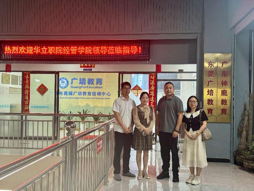 2025年4月17日,经济管理学院副院长朱向平、大数据与会计系主任何玉冰、实习就业办公室负责人陈湛通等一行人,莅临东莞校友企业东莞市莞城广培教育培训中心进行走访调研。期间,与广培教育创始人兼总经理庞志敏校友(2009届市场营销专业毕业生)就深化校企合作、探索母校与地方校友分会如何更优衔接起来进行了深入交流,旨在为母校及校友们贡献更多的力量。