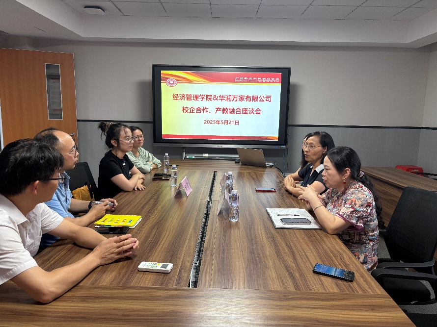 2025年5月21日下午,华润万家有限公司陈琼经理一行莅临我校经济管理学院,就深化校企合作、推动产教融合进行专题洽谈。经济管理学院院长刘惠玲、副院长朱向平及相关专业教师出席本次会议。双方围绕人才培养、实习就业、课程开发及产学研合作等议题展开深入交流,并就创新合作模式达成多项共识。