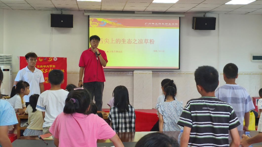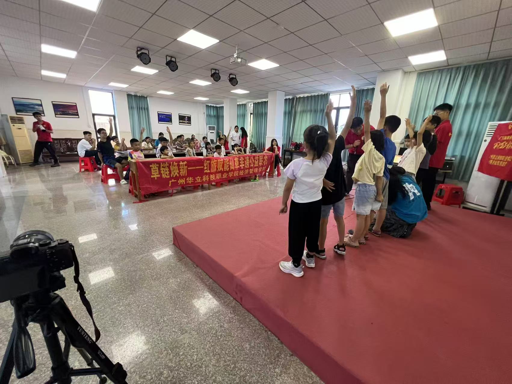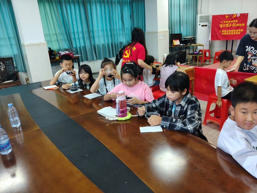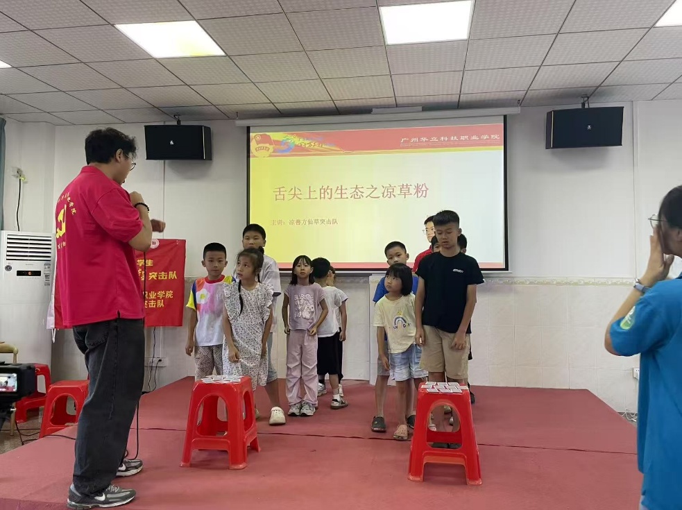 在“百千万工程”三下乡活动的热潮中,7月13日,广州华立科技职业学院凉善方仙草突击队来到了增城区陆村村,带着一份特别的计划——和村里的孩子们一起制作并品尝夏日清凉美味的黑凉粉,让这份清甜在他们们的童年记忆里留下一抹独特的印记。