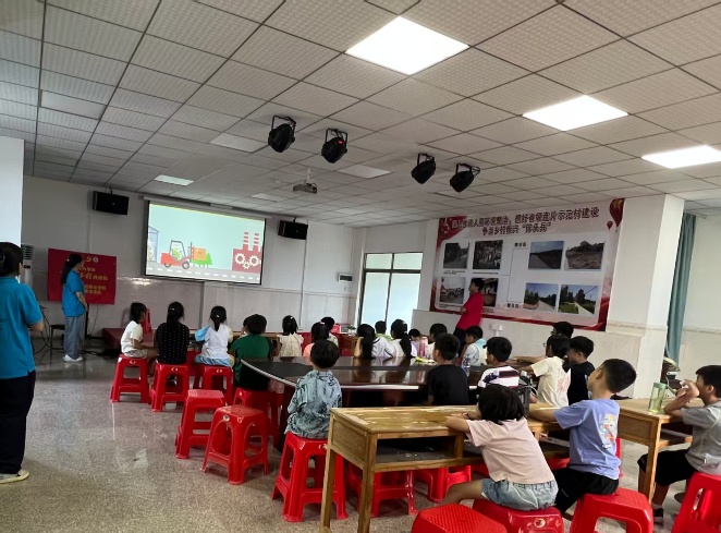 突击队不仅为孩子们上了一堂手工课,还设计了“垃圾分类大闯关”游戏:队员们用彩纸制作出“可回收物”“厨余垃圾”等分类标识,孩子们分组竞赛,将模拟垃圾卡片投入对应“垃圾桶”,正确率最高的小组还能获得环保奖励。此外,队员们还通过垃圾污染的危害短视频,让孩子们直观感受“绿水青山”的重要性。