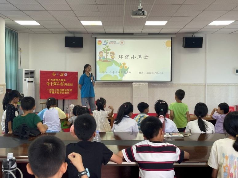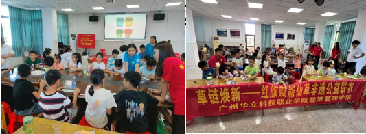 2025年7月13日,广州华立科技职业学院凉善方仙草突击队与增城区陆村村20多名孩子开始环保宣传活动,突击队将环保理念融入课堂,为孩子们设了一系列生动有趣的环保课程。队员们通过动手实践、情景互动等方式,让孩子们在玩乐中学习环保知识,种下爱护自然的“绿色种子”。