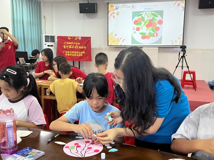 广州增城是著名的“荔枝之乡”,突击队带领孩子们用新鲜荔枝壳、彩纸等材料创作艺术作品。课堂上,突击队队员先讲解荔枝的生长特点与环保创意理念,再示范拼贴技巧。孩子们发挥想象,用当地盛产的荔枝组合成花朵、小动物等图案,在动手实践中感受自然与艺术的结合。