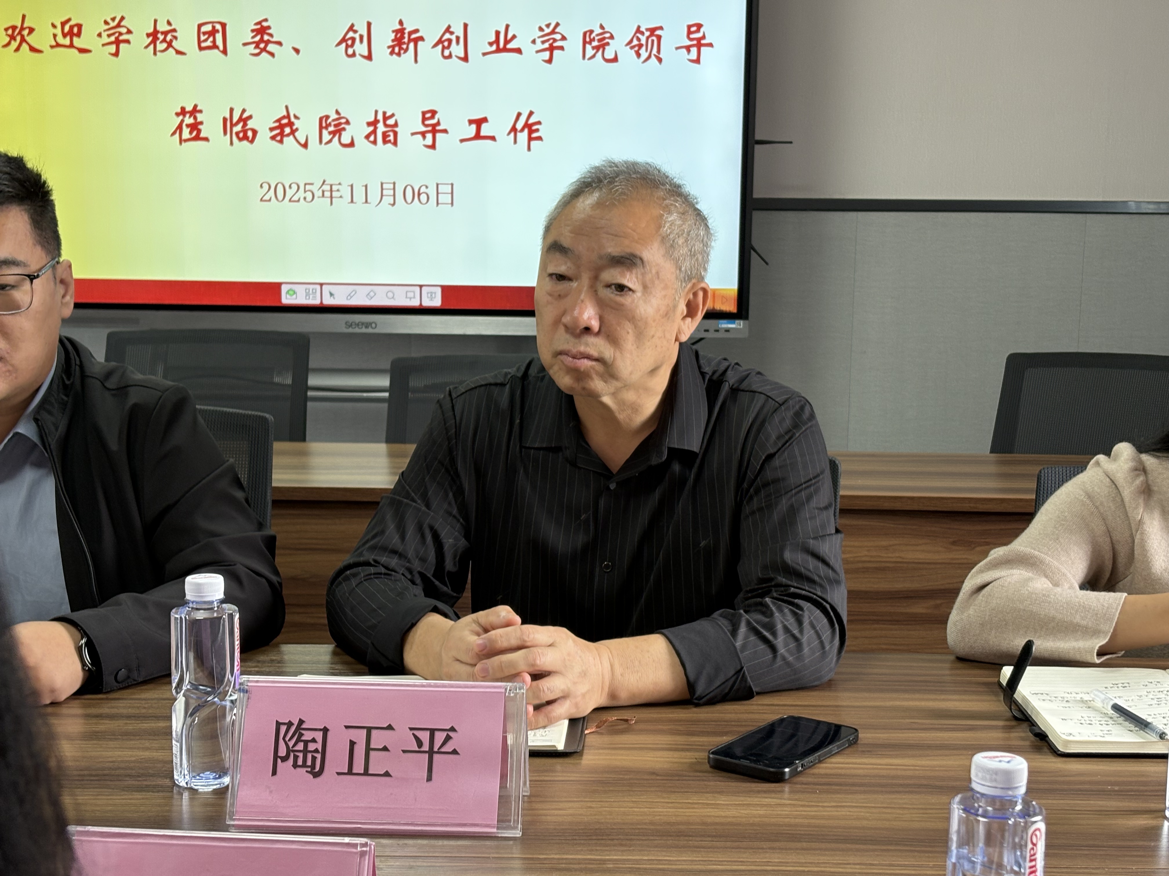 2025年11月6日,学校团委书记张超越、创新创业学院院长陶正平等一行领导莅临我院,就全力备战2026年度“挑战杯”全国大学生课外学术科技作品竞赛(简称“挑战杯”)和国家级大学生创新创业训练计划项目(简称“国创赛”)进行动员指导和工作部署。我院院长刘惠玲、副院长朱向平及相关分管领导参加了此次启动会议。