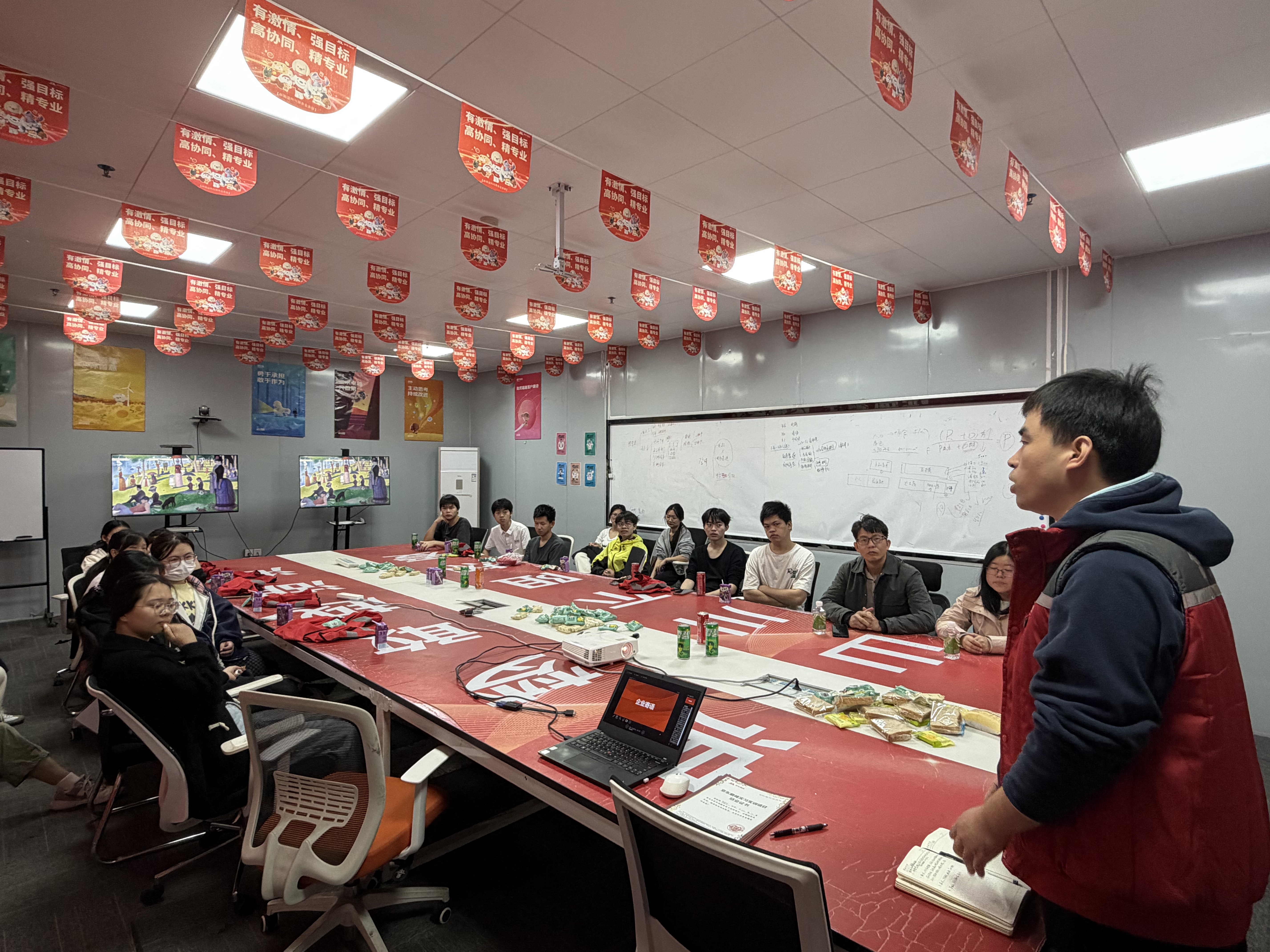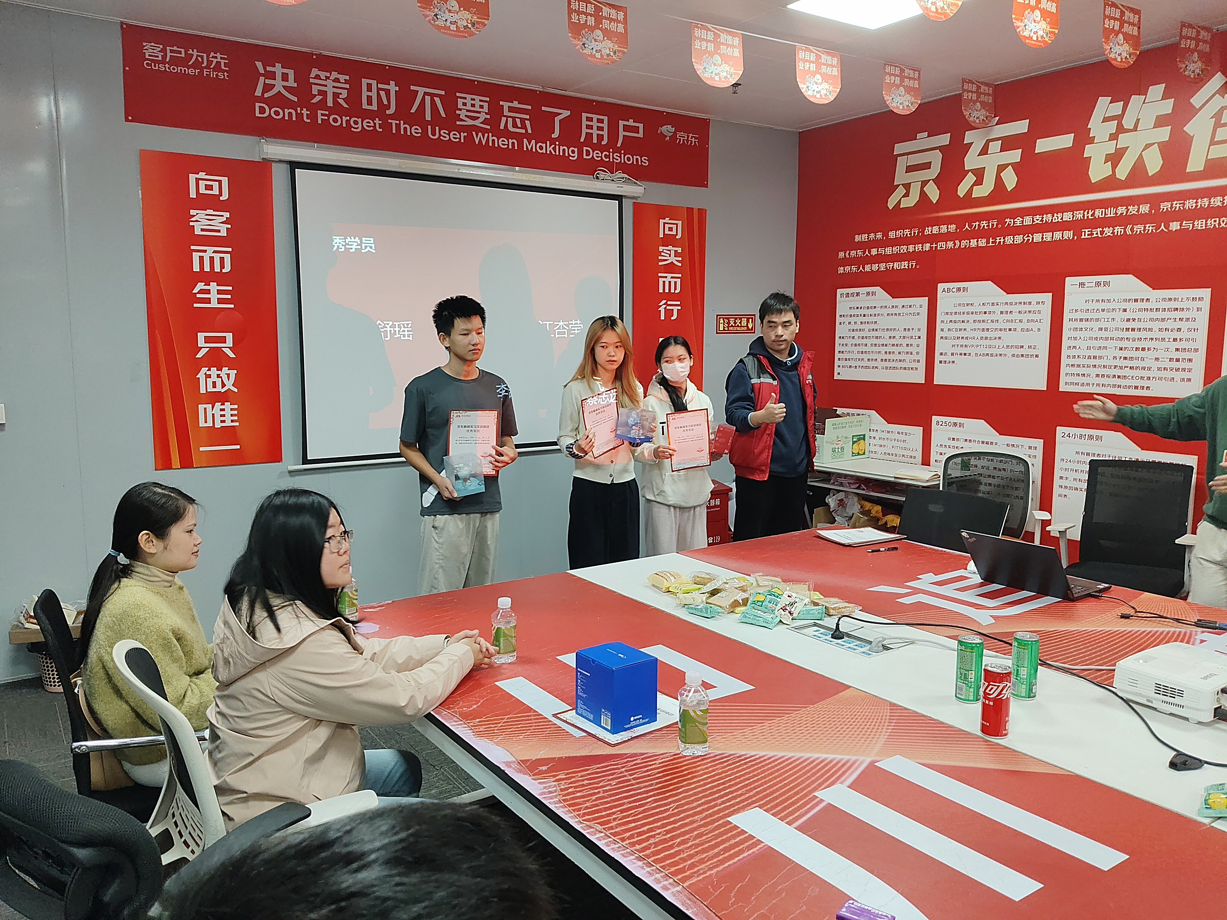 在成果分享环节,同学们用一段段精心制作的短视频展示了在京东物流各岗位学习实践的点点滴滴,从仓储分拣到配送运营,从客户服务到技术应用,一个个生动的画面展现了同学们的成长与蜕变。学生代表表示,通过“工学交替”,不仅将课堂所学应用于实际工作,解决了真实场景中的问题,更深刻体会到了团队协作、责任担当和职业规范的重要性,这段经历将成为其人生中一笔宝贵的财富。