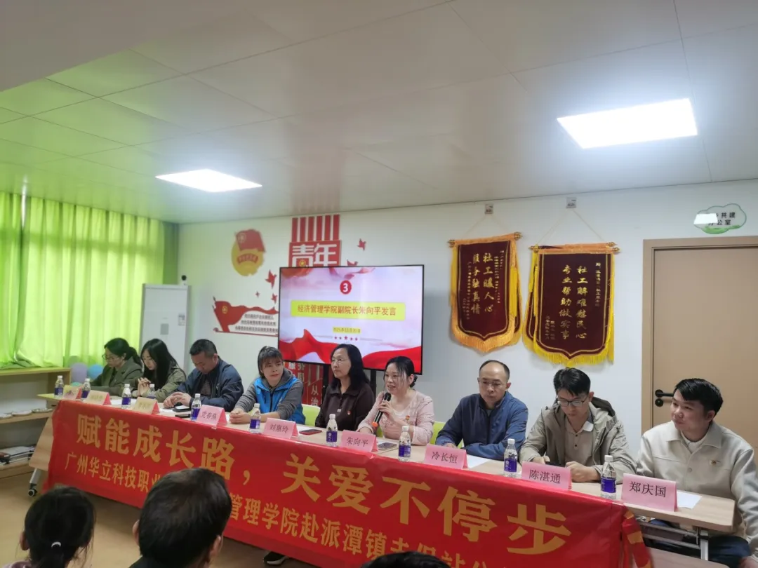 20251220日上午,广州华立科技职业学院经济管理学院党总支师生党员一行赴增城区派潭镇第二社工服务站,开展“壹元助梦”暨“乡村振兴你我同行”爱心帮扶活动。以“党建引领聚合力·温情护航伴成长”为主题,用实际行动为困境家庭儿童送去关怀,为乡村振兴注入温暖力量。