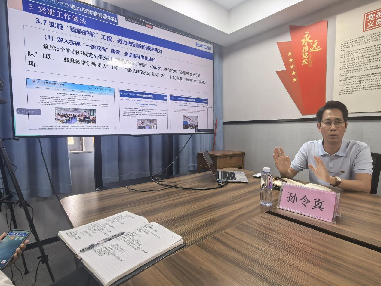 电力与智能制造学院教师党支部书记孙令真详细介绍了省级党建工作样板支部的创建做法。他重点讲解了支部打造的“123477”党建创优工程,从核心引领、基本保障、建设重点、特色载体等方面,系统阐述了党支部治理体制机制的构建过程。同时,他介绍了支部深入开展“儒雅电力人”文化育人党建品牌建设,构建大思政育人格局的具体举措,为参会人员提供了可借鉴、可复制的实践经验。