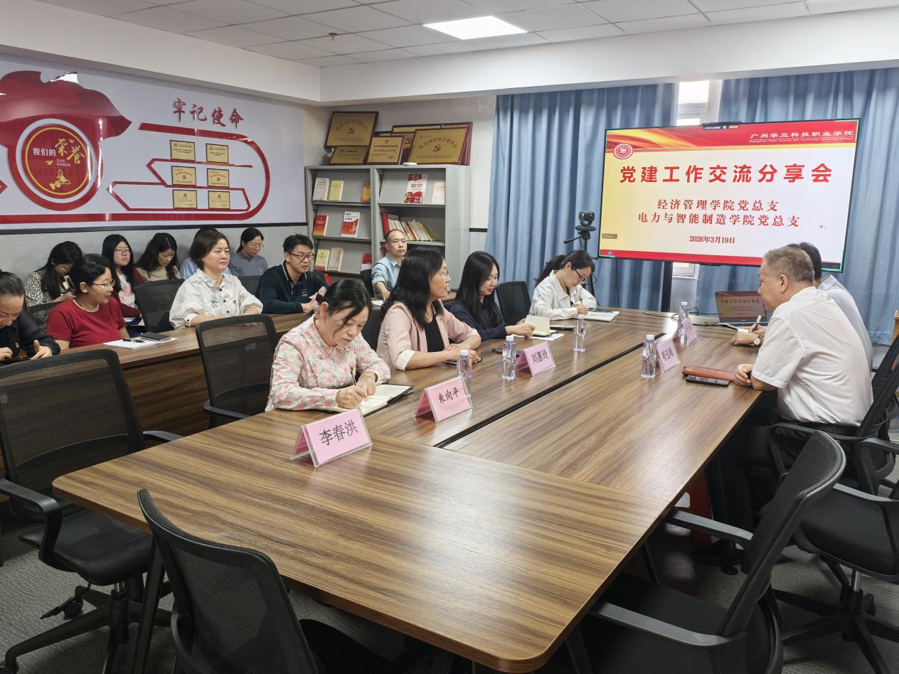 为深入学习贯彻习近平新时代中国特色社会主义思想,全面落实新时代党的建设总要求,进一步提升基层党组织建设质量,促进高校基层党建工作互学互鉴、共促提升,2026319日,经济管理学院党总支与电力与智能制造学院党总支联合开展党建工作交流分享会。此次会议以学习先进经验、凝聚党建合力为核心,重点围绕电力与智能制造学院教师党支部省级党建工作样板支部创建经验展开交流。电力与智能制造学院党总支书记玉峰、教师党支部书记孙令真,经济管理学院党总支书记刘惠玲、委员朱向平、云浮校区党支部书记刘军根、教师党支部书记杨素芹、专职副书记兼学生党支部书记谢晓慧,以及两学院教师党员代表出席会议。