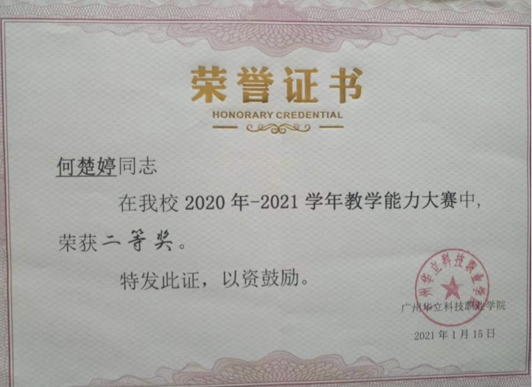 马克思主义学院何楚婷老师获2020-2021学年教学能力大赛二等奖