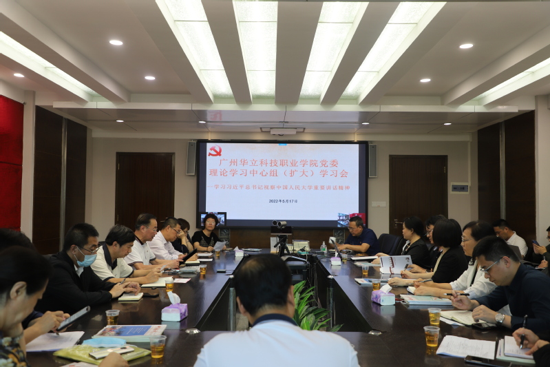 5月17日,在行政楼305会议室召开理论中心组扩大学习会,传达学习习近平总书记在中国人民大学考察时的重要讲话精神。学校党委委员、校领导、中层干部、基层党组织书记和马克思主义学院全体思政教师参加学习会,云浮校区以视频连线形式学习。学校党委书记林伟健教授主持会议。