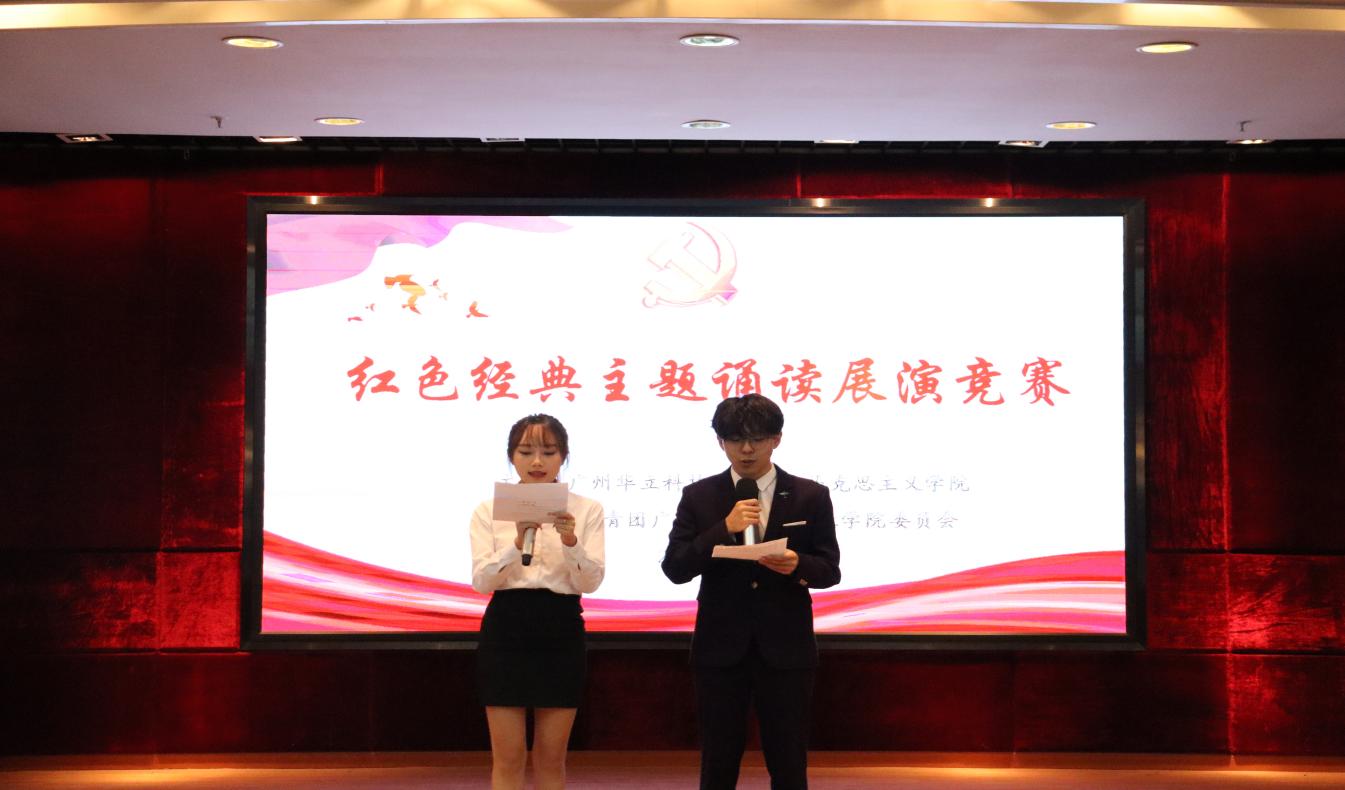 2022年11月1日晚19点,由马克思主义学院主办,校团委承办的广州华立科技职业学院大学生“红色经典主题 诵读展演竞赛”活动于东区图书馆一号报告厅正式落下帷幕。本次比赛的目的是学习宣传贯彻党的二十大精神,在诵读红色经典中学习党的百年光辉历史,铸牢中华民族共同体意识。出席此次大赛的领导和嘉宾有学校党委书记陈良声、马克思主义学院院长廖良初、教育学院教授高玲以及各二级学院党总支书记、团总支书记、辅导员、马克思主义学院全体老师等。担任此次大赛的评委有马克思主义学院王立敏教授、办公室主任朱君副教授、党委办公室孟允煌副主任、校团委杨涛书记、马克思主义学院白淑梅副教授、马克思主义学院张燕金副教授以及马克思主义学院李敏教师。