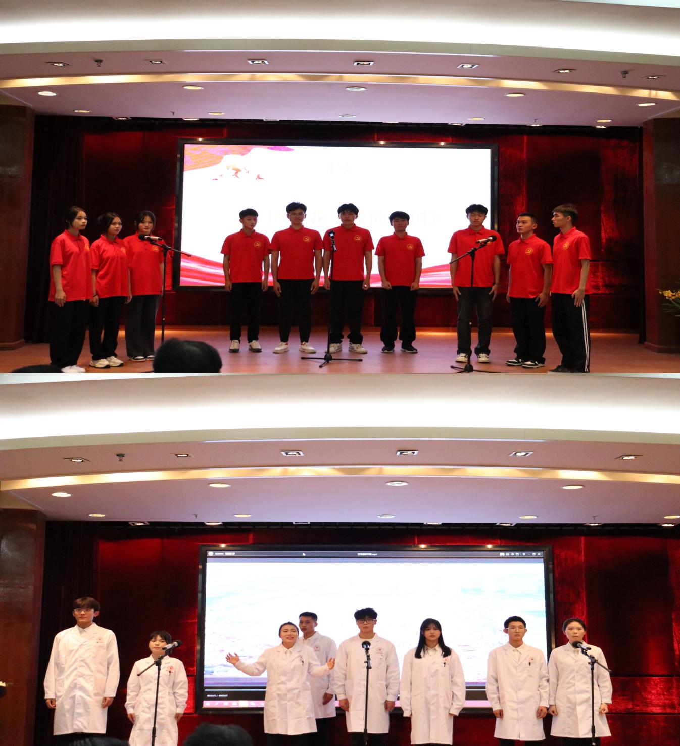 参加比赛的八支队伍呈现出精彩生动的八个作品。比赛伊始,财经学院演绎的《与时代同向,与祖国同行》拉开帷幕,在他们的诵读声中,让我们感受到青春炙热的理想奏响新时代的青春之歌。接下来,管理学院《青春跟党走》诵读铿锵有力,我们是祖国的希望,我们是中华的栋梁,青年永远跟党走。把青春朝气蓬勃气息完美地诠释出来了。电力学院《祖国啊我亲爱的祖国》,仿佛是在诉说着神州大地动人的传奇。艺术与传媒学院《请党放心,强国有我》,极力歌颂了青年的朝气蓬勃,体现出当代中国青年发奋图强的风骨。健康学院《逆光的翅膀》,聚小爱为大爱的天使演绎,护佑了人世的健康,春风重启,万物生长,令人震撼。接下来,计算机信息工程学院《有一首歌》、城建学院《百年恰是风华正茂》以及教育学院《军礼》让我们真切感受到了强烈的民族自豪感和归属感。丝丝管弦,演不尽中华的流光溢彩;悠悠书生,诵不完党旗的悠扬铿锵。
