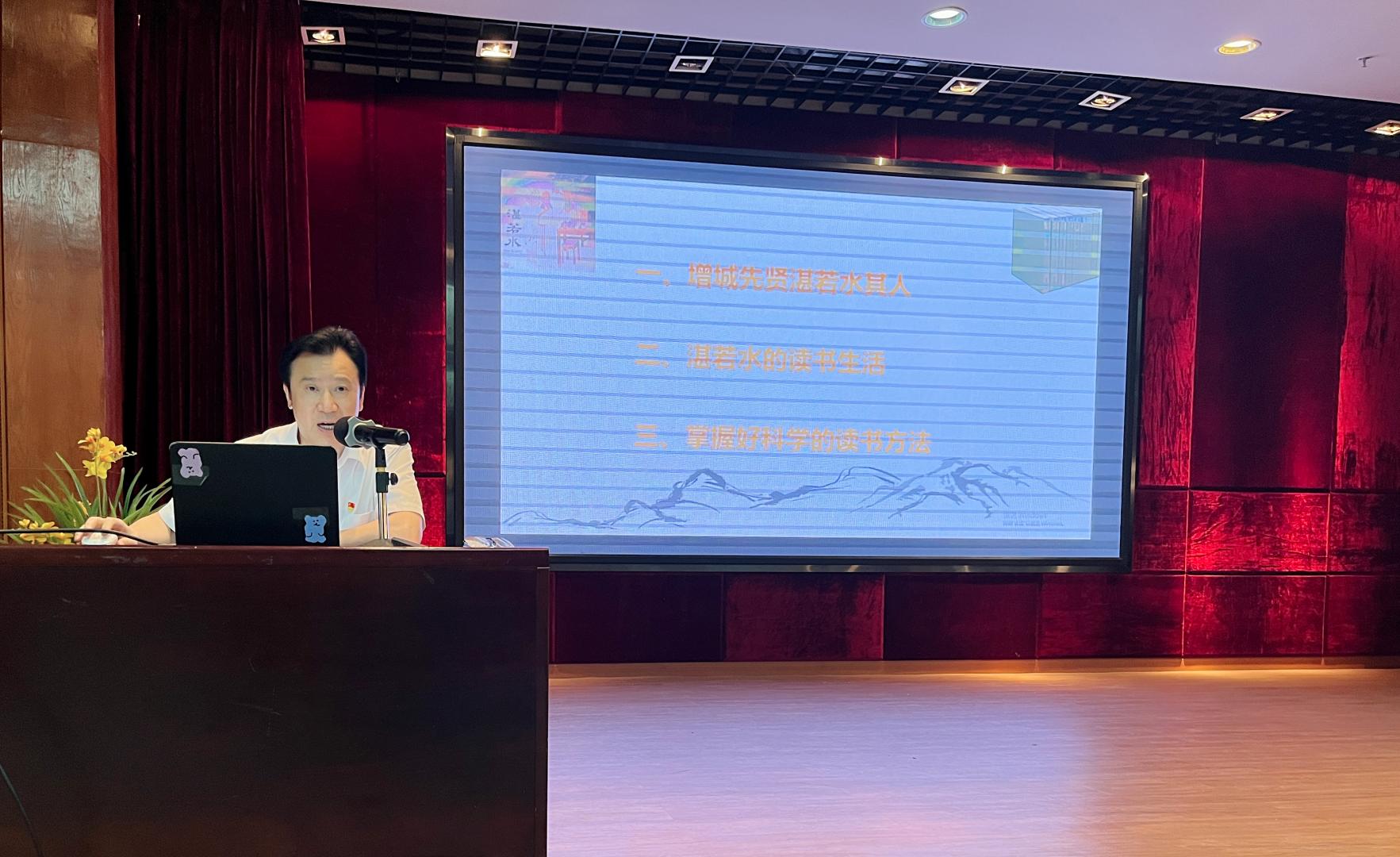 讲座上,廖教授详细介绍了增城先贤湛若水及他的读书生活。湛若水:号甘泉,明代著名的思想家、哲学家、政治家、教育家、书法家和诗人。他一生从事过外交、行政、教育等工作,创办了40多所书院,撰写著作550多万字,并创立了甘泉学派,其影响扩展到了甘泉文化。湛若水能留芳千古,产生如此巨大影响,不仅是他的官职,更多是他的书、他的思想、他的精神。纵观湛若水一生:读书、写书、教书是他的人生主线,大器晚成、苦读经书、读而思书、与人辩论是他的读书生活特点。