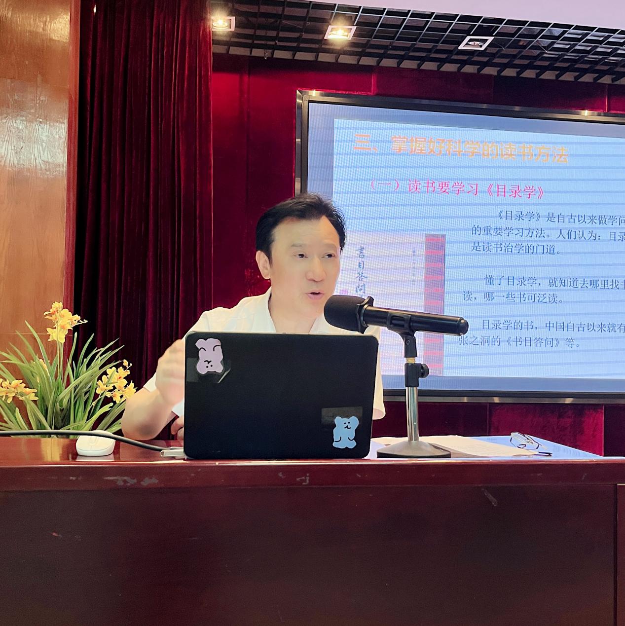 此次讲座是我校“2023年读书月系列活动”讲座系列之一,廖教授的讲座以读书为切入点,带领大家深入的了解增城先贤湛若水其人。“廖教授的讲座内容丰富,深入浅出,通俗易懂,不仅让我们认识了增城先贤湛若水,也让我们对中华优秀传统文化、广东地方文化有了进一步的了解。更重要的是,他让我们通过了解湛若水的读书生活特点,学会了如何科学读书。”图书馆馆长刘杰教授主持了这次活动并代表我馆对廖教授的讲座表示了感谢。