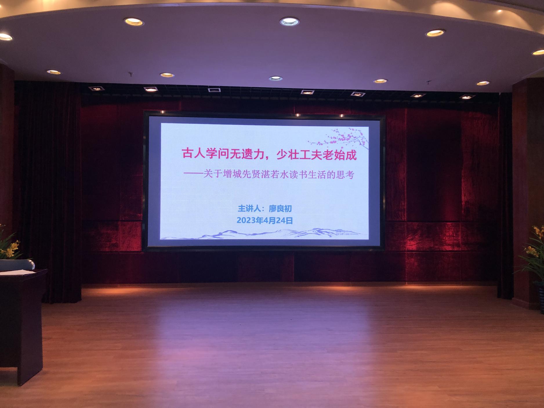 2023年4月24日下午,我校读书月活动伊始之际,1号报告厅里响起了阵阵掌声,100余名师生聆听了我校马克思主义学院院长、廖良初教授的读书讲座:《古人学问无遗力,少壮工夫老始成——关于增城先贤湛若水读书生活的思考》。