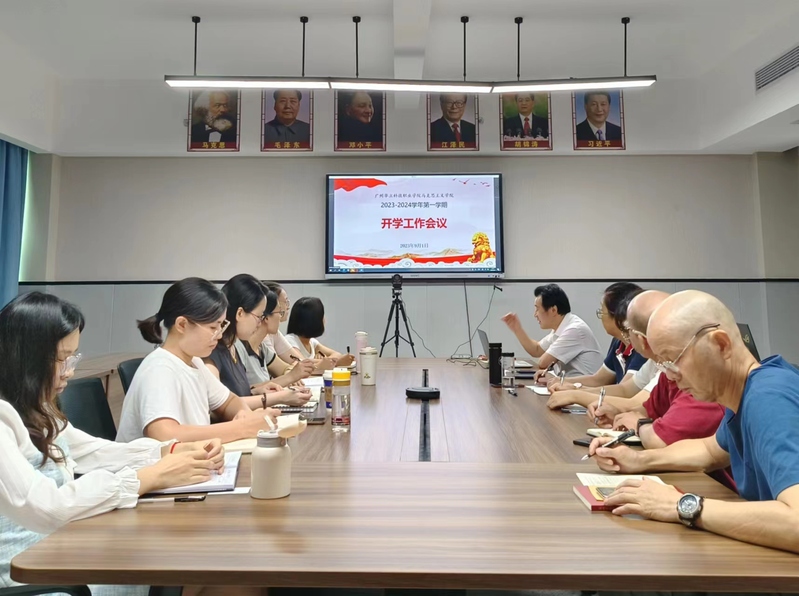 为了全面做好新学期的各项工作,认清目前形势、明确工作职责、提升育人质量,实现跨越式发展,2023年9月1日,马克思主义学院在行政楼518会议室召开2023-2024学年第一学期开学工作会议。广州校区马克思主义学院全体教师参加,云浮校区思政课教师以腾讯会议形式线上参会,会议由马克思主义学院副院长梁国英教授主持。