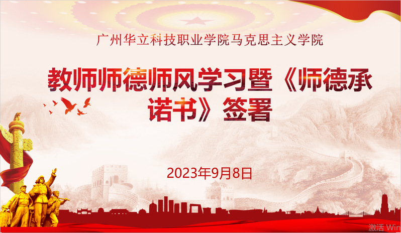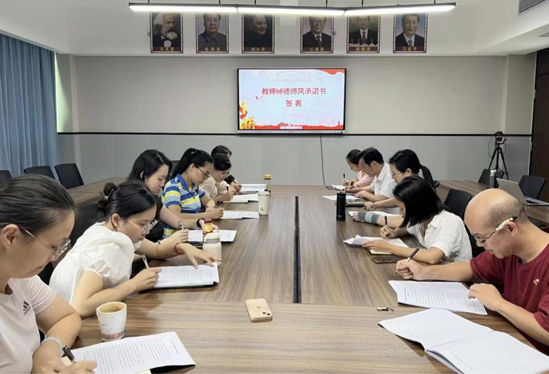 随后,广州校区马克思主义学院全体教师就师德师风相关法律法规,以及《广州华立科技职业学院教师职业行为负面清单及处理办法》,《广州华立科技职业学院师德承诺制度》,《广州华立科技职业学院师德考核制度》,《华立园十要十不准》等进行学习讨论,并且签订了《师德承诺书》,以时刻警醒、严格要求自己。