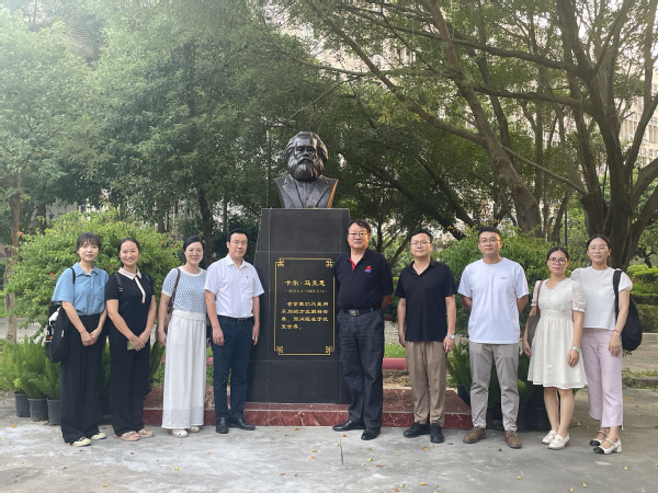 在结束经验分享之后,王仕民院长带领我校一行参观了广州商学院马克思主义学院办公大楼,其中主要参观了老师们的办公场地、智慧教室、研究中心、马院图书室、资料室等场所。王院长还介绍了马克思主义文化广场的建设规划,包括院徽的设计,院歌、学院的MTV拍摄等。最后,大家来到广州商学院马克思主义文化广场,参观马克思雕像、文化墙等设施,并在马克思雕像前合影留念。