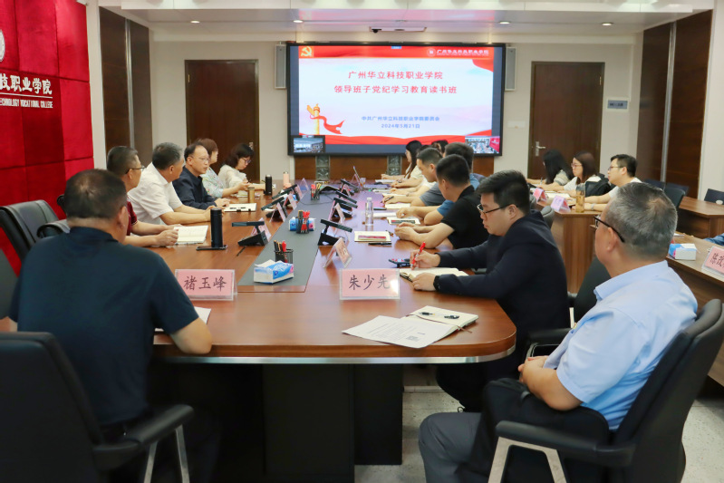5月21日上午,广州华立科技职业学院党委在305会议室举办党纪学习教育读书班,我院廖良初教授为读书班讲授“学纪.知纪.明纪.守纪——《中国共产党纪律处分条例》解读”。这是我校为“党纪学习教育”而开设专题讲授的第三课。学校党委书记陈良声主持,校长陈德清及其他校领导、校党委委员、纪委委员、党委各部门负责人、各基层党组织负责人出席,云浮校区的相关领导通过视频连线参加。