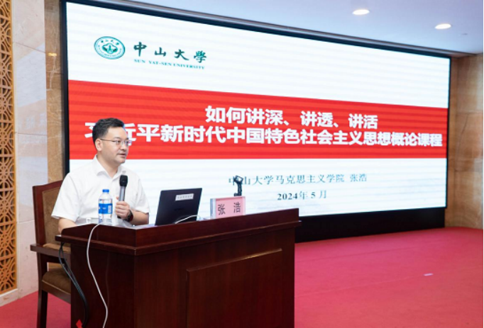 中山大学中共党史党建研究院执行院长、马克思主义学院副院长张浩从“以‘讲深’道理为着力点,深耕教学内容;以‘讲透’道理为着力点,精构教学过程;以‘讲活’道理为着力点,创新教学方式”等五个方面分享了他对讲深、讲透、讲活“概论”课的独到见解。
