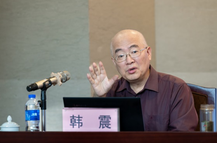 中央马克思主义理论研究和建设工程咨询委员会委员、国家教材委员会委员、北京师范大学学术委员会主任韩震教授作题为《总体国家安全观视域下的意识形态安全》主体报告。他从“意识形态工作的意义、我国意识形态安全存在的隐忧、文化自信心动摇的成因分析、关于改进意识形态工作的思考、做好意识形态工作的有利条件”等方面对意识形态的现状、成因、对策进行深入剖析。