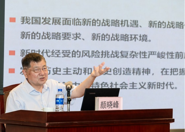 培训班上,中央马克思主义理论研究和建设工程咨询委员会委员、教育部高校思政课总教指委副主任委员、天津大学马克思主义学院院长颜晓峰教授作题为《〈习近平新时代中国特色社会主义思想概论〉教学研究的几点体会》的主题报告。他从“怎样理解习近平新时代中国特色社会主义思想创立的时代背景、为什么说习近平新时代中国特色社会主义思想是坚持‘两个结合’的重大成果、怎样理解习近平新时代中国特色社会主义思想的科学体系、怎样理解习近平新时代中国特色社会主义思想的意义、为什么说‘两个确立’具有决定性意义”等内容深入解读了“导论”的若干问题,对参会教师全面、准确理解“导论”具有重要的指导意义。