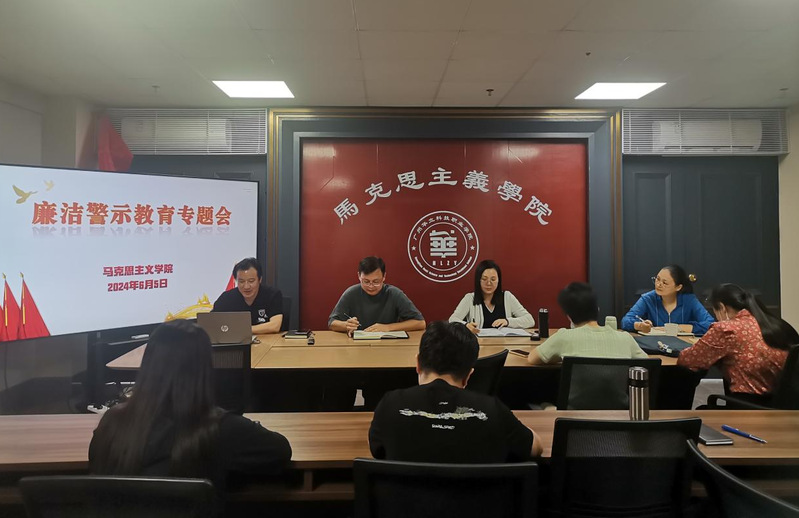 为推动党纪学习教育走深走实,贯彻落实教育部办公厅《关于举办第九届高校廉洁教育系列活动的通知》精神,加强全体党员纪律建设,6月5日下午,马克思主义直属党支部在G1栋314会议室召开廉洁警示教育专题会。会议由廖良初书记主持,张燕金副教授主讲,全体党员参加。