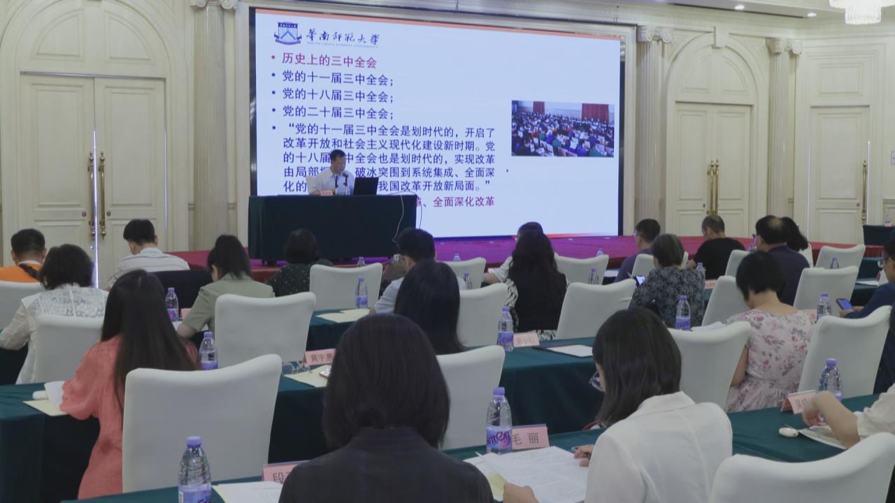 研修班上,华南师范大学学术委员会副主任、马克思主义学院教授、博士生导师,教育部“长江学者”特聘教授陈金龙以《进一步全面深化改革以推进中国式现代化》为题授课;广州大学党委书记、校长、教授、博士生导师魏明海以《加快建构中国哲学社会科学自主知识体系》为题授课;广东外语外贸大学社会与公共管理学院教授吴月以《党建引领社会组织高质量发展:政策指引与典型案例分析》为题授课;市社科联党组成员、专职副主席谭晓红以《建设具有强大凝聚力和引领力的社会主义意识形态》为题授课。