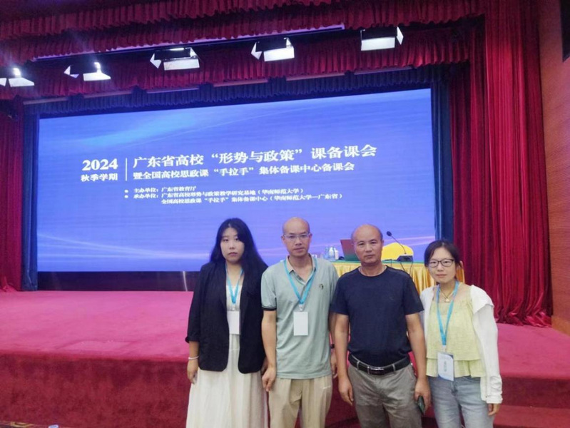 9月22日,由广东省教育厅主办、广东省高校形势与政策教学研究基地(华南师范大学)承办的2024年秋季学期“形势与政策”课备课会在广州举行。来自全省各高校的思想政治理论课教师300多人齐聚一堂,我院形势与政策课教师代表伍揆祁、廖后发、郑琬婧、张璐四人参加。