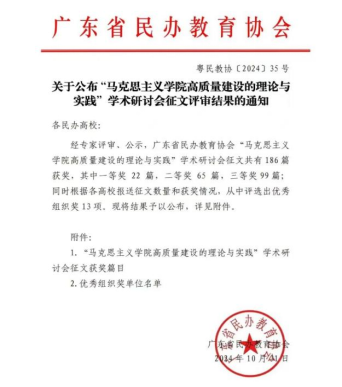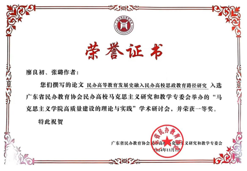 研讨会共收到来自全省50多所高校的250多篇投稿,由评委会评选出优秀论文一等奖22篇,二等奖及其他奖100余篇。我院廖良初教授、张璐老师合作的《民办高等教育发展史融入高校思想政治教育路径研究》一文荣获一等奖。