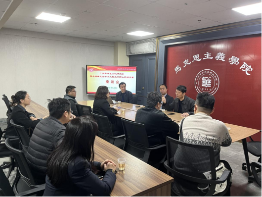 参观考察后,大家来到广州华立科技职业学院马克思主义学院会议室,就广州市甘泉文化研究会、乡村振兴学院如何服务增城区百千万工程及环两山区域发展举行座谈。广州市增城区委宣传部杨荣邦副部长提出,要落实习近平总书记关于中华优秀传统文化“双创”发展的指示,打造具有地方特色的文化品牌。通过农文旅融合赋能乡村振兴的模式,充分发挥广州市甘泉文化研究会的平台作用,将乡村振兴、医养康养、研究会、驿站与企业形成闭环。在学校内,以甘泉文化为基础,融入榄雕、陶艺、中医养生课程或作品等,转化设计文创类产品,形成平台经济,激发地方文化的内生动力,在“文化兴”中实现“产业旺”。
