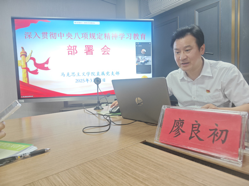 3月27日下午,我院在G1-314室召开深入贯彻中央八项规定精神学习教育部署会。全体党员参加,云浮校区以连线形式参加会议。会议由党支部书记廖良初同志主持。