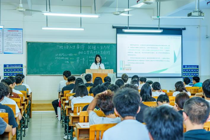 课堂上,陈月娣老师以“人生观与人生目的”为重点,以“我是谁?”为切入点,引导学生深入思考个人与社会的关系,并结合典型案例系统阐释树立高尚人生目标的重要意义。