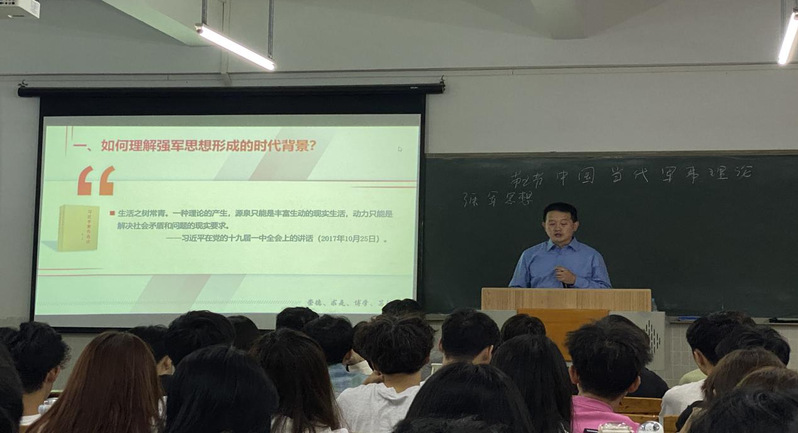 何老师阐释了习近平强军思想的核心要义,并要求学生深刻理解习近平强军思想是我党不懈探索中国特色强军之路形成的宝贵思想结晶,是加快国防和军队现代化,全面建设世界一流军队的根本遵循和行动纲领,开拓了当代中国马克思主义军事理论和军事实践发展的新境界。